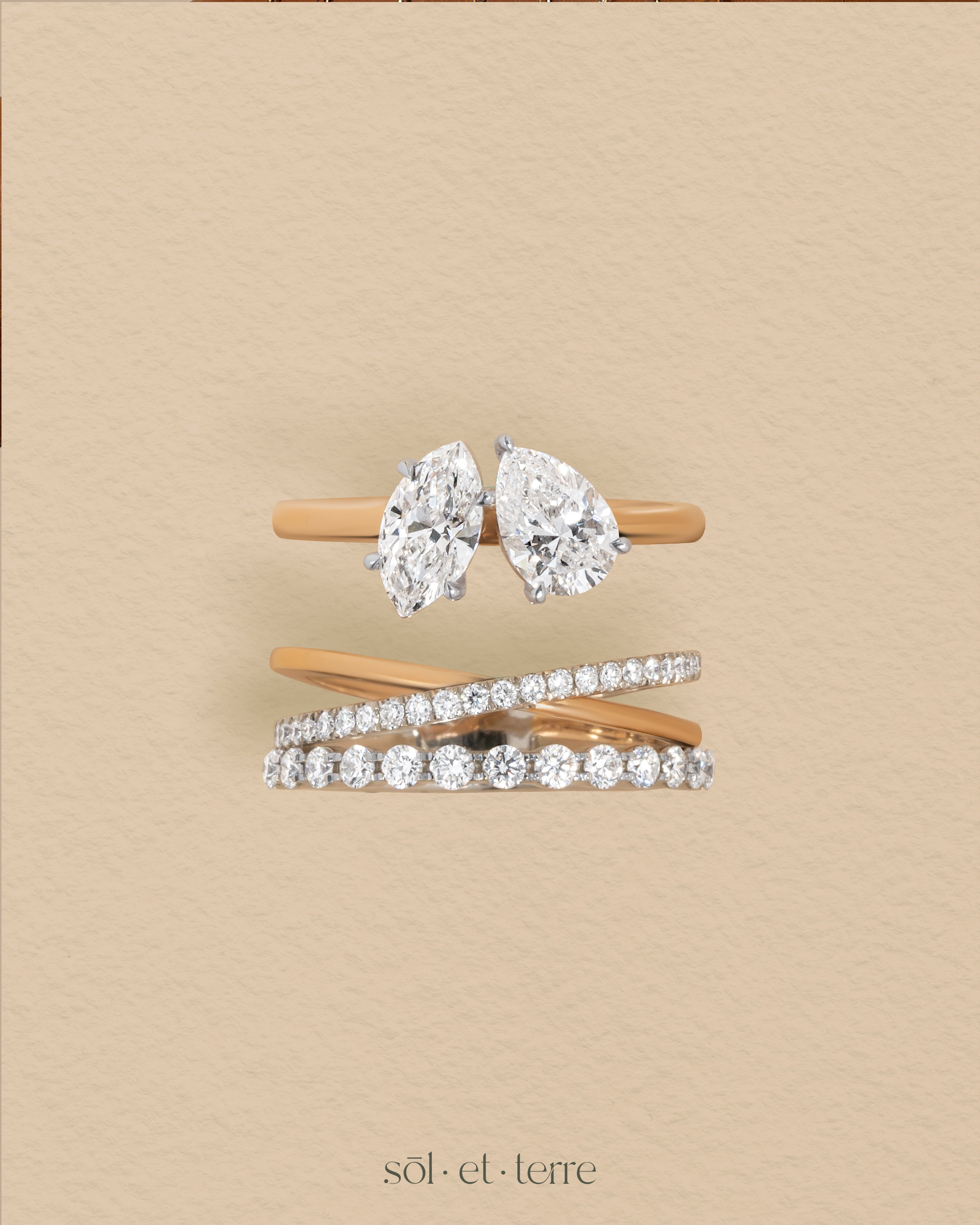 Dual Layer Crowned Pear Diamond Ring | Sol et Terre