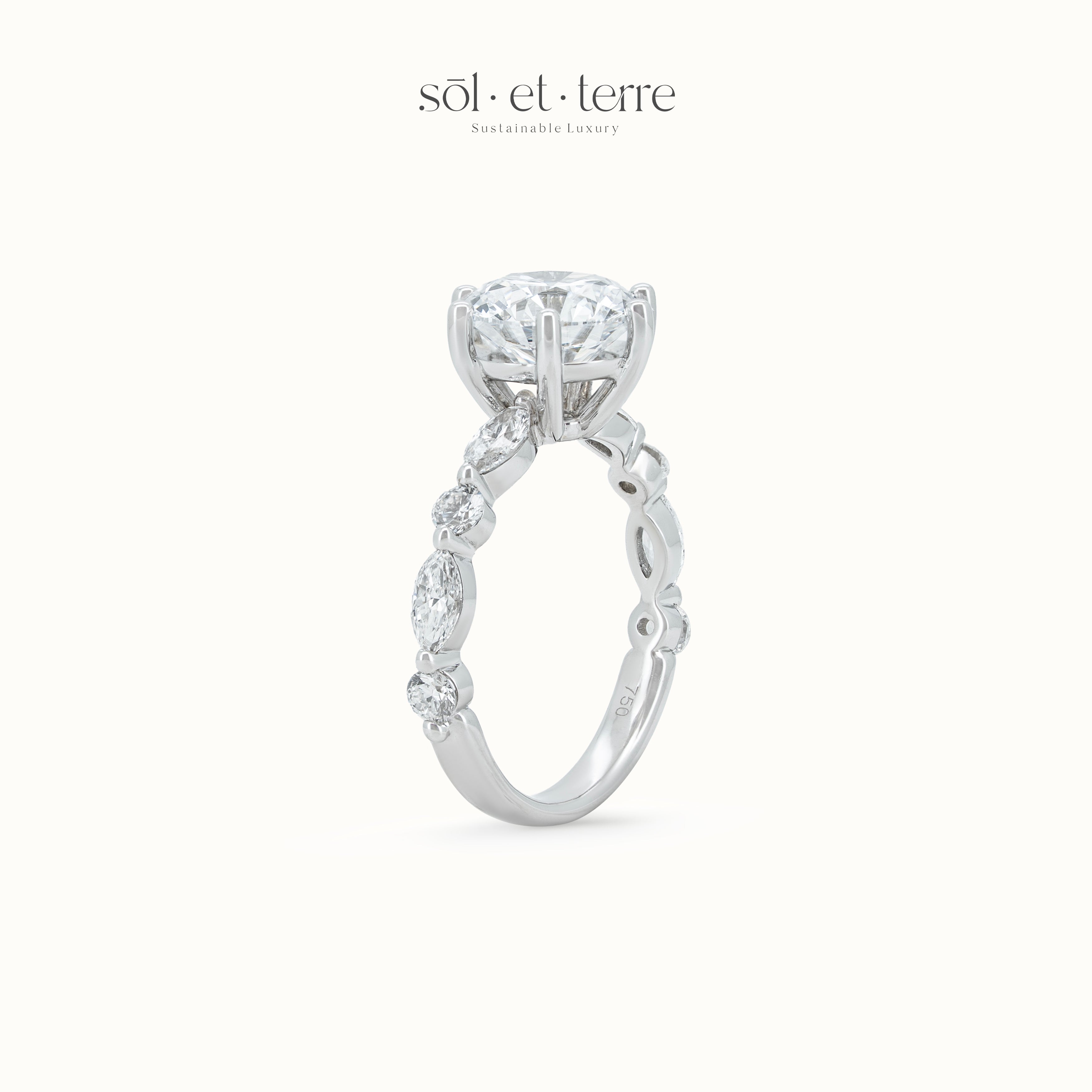 Round Diamond with Marquise and Round Band | Sol et Terre